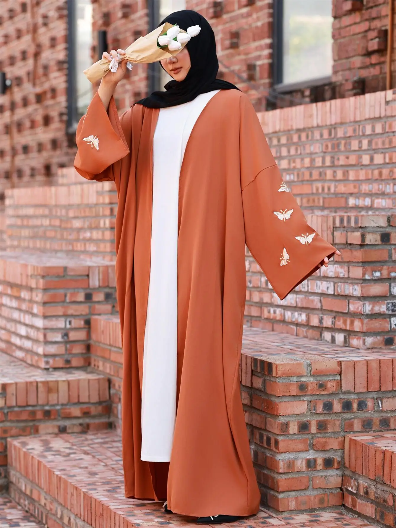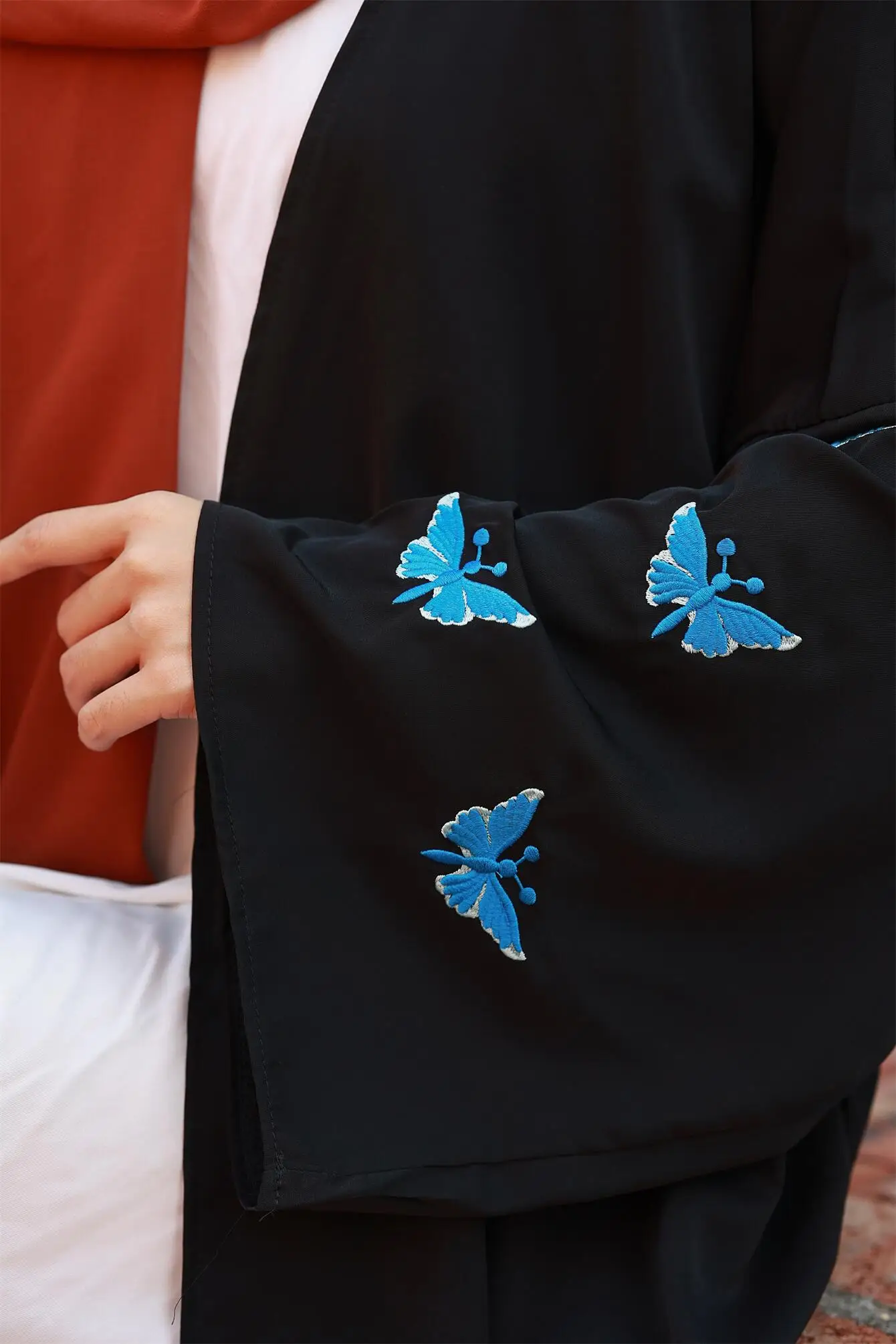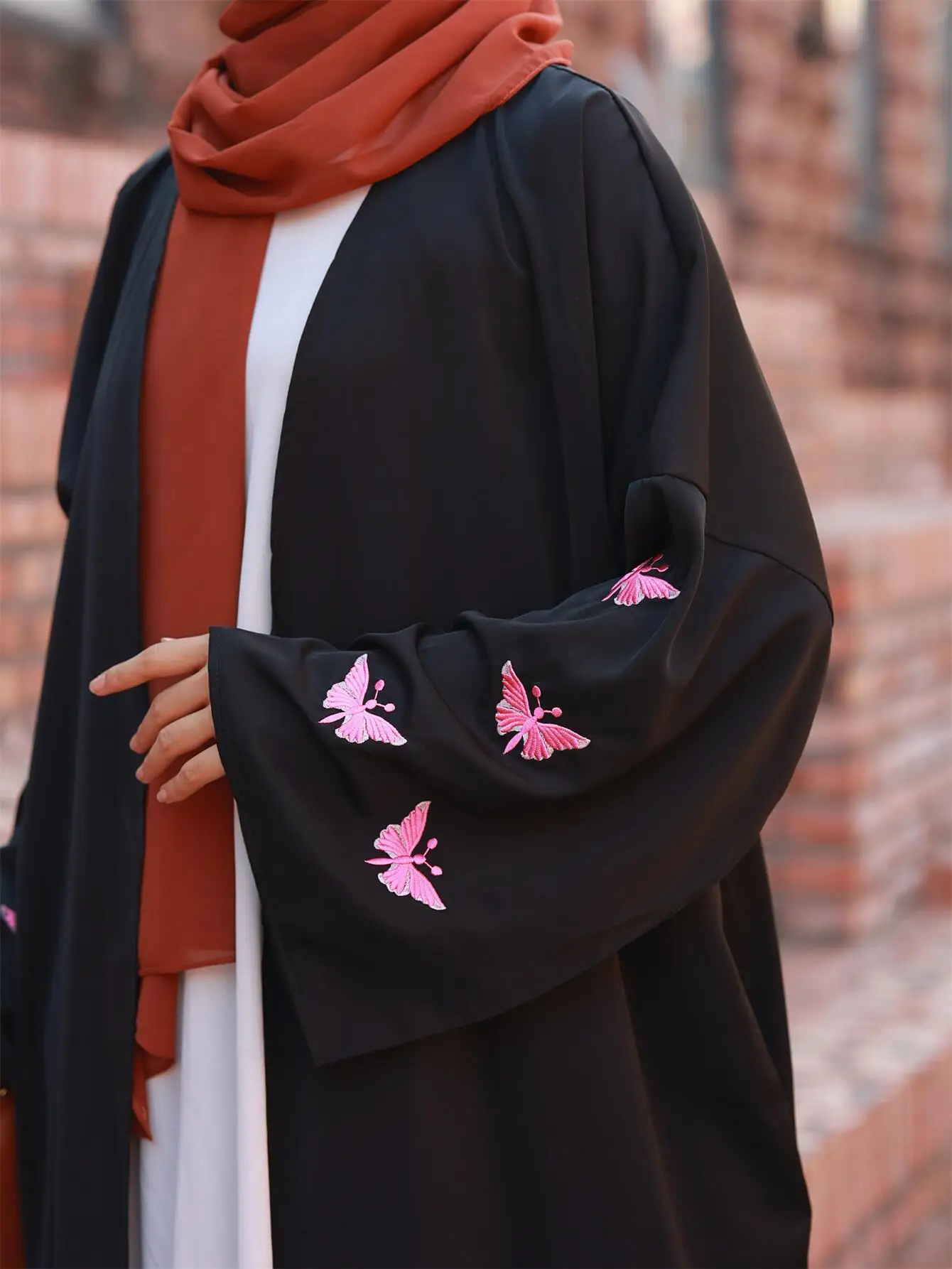 Butterfly Embroidered Open Front Abaya